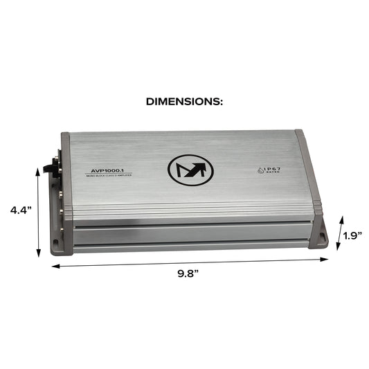 AquaVibe Pro Mono-Channel Class D 1000-Watt Marine Amplifier IP67 Rated