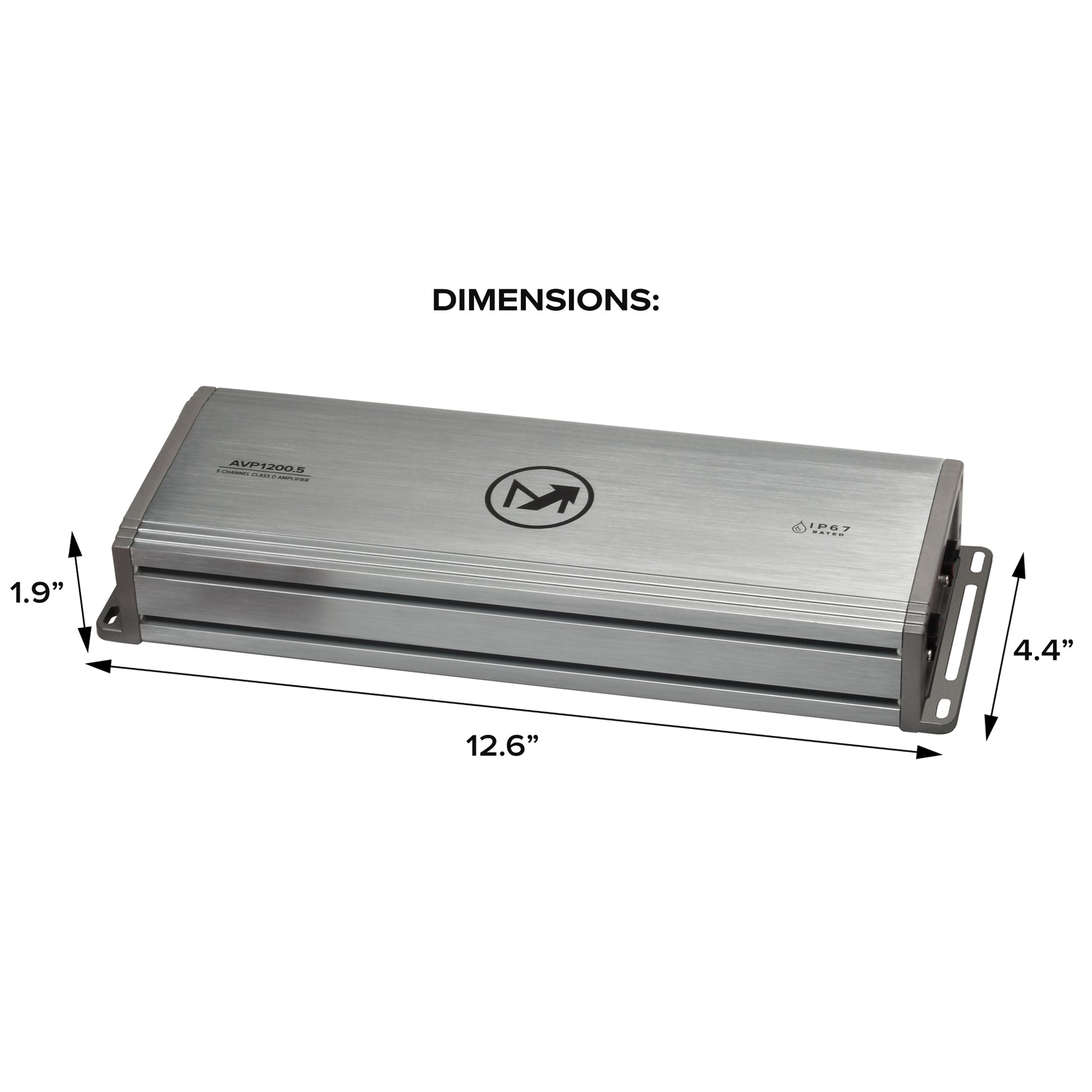 The AVP1200.5 is a powerhouse 5-channel amplifier that delivers an impressive 1200 watts of total RMS power in a single compact chassis. This versatile unit can drive your entire audio system, powering four to eight speakers plus a subwoofer simultaneously. With 150W x 4 channels at 2Ω for your main speakers and up to 600W x 1 channel at 1Ω for your subwoofer, it offers exceptional sound control. The amplifier features comprehensive tuning options including variable crossovers, gain controls, and a remote bass knob for on-the-fly adjustments. Its slim design, measuring just 12.6 x 4.4 x 1.9 inches, allows for flexible mounting options in tight spaces. The IP67-rated construction ensures reliable performance in challenging environments, while built-in protection circuits guard against short circuits, clipping, and thermal overload. Advanced features include subsonic filters, front/rear crossovers, and high-pass/low-pass filtering capabilities, making it an ideal solution for marine, RV, and off-road vehicle audio systems.